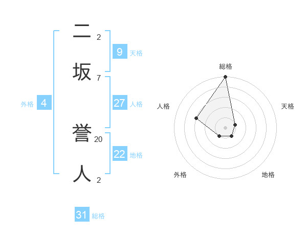 二坂 誉人さんを姓名の画数から五運を鑑定
