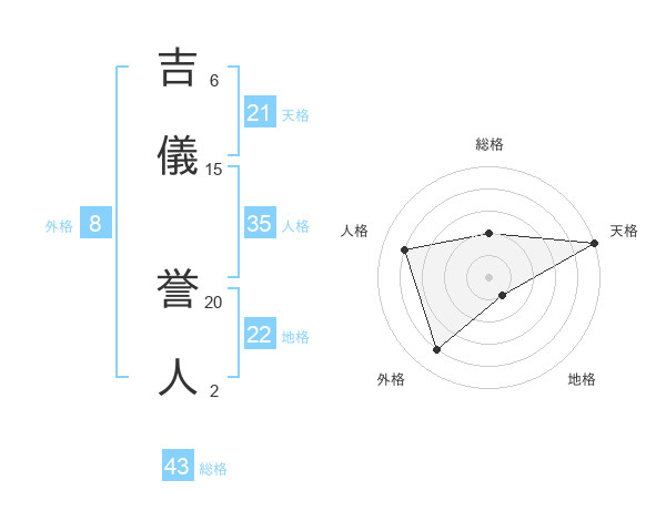 吉儀 誉人さんの天格は21画の5点!