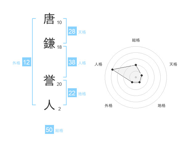 唐鎌 誉人さんの総格は50画の2点!