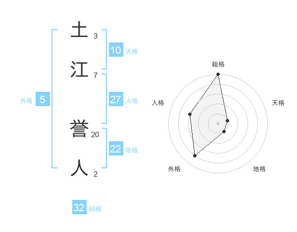 土江 誉人さんの総格は32画の5点!