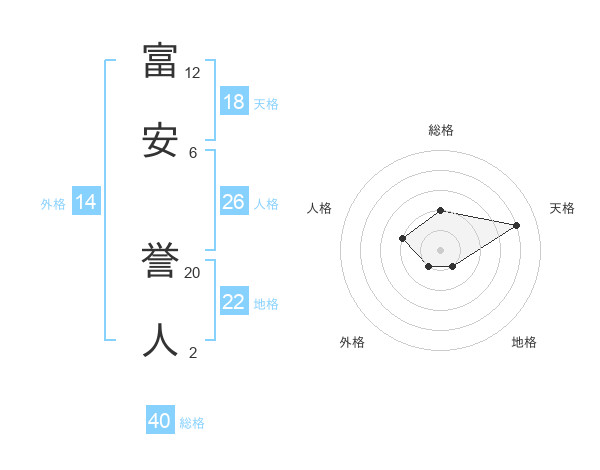 富安 誉人さんの総格は40画の2点!
