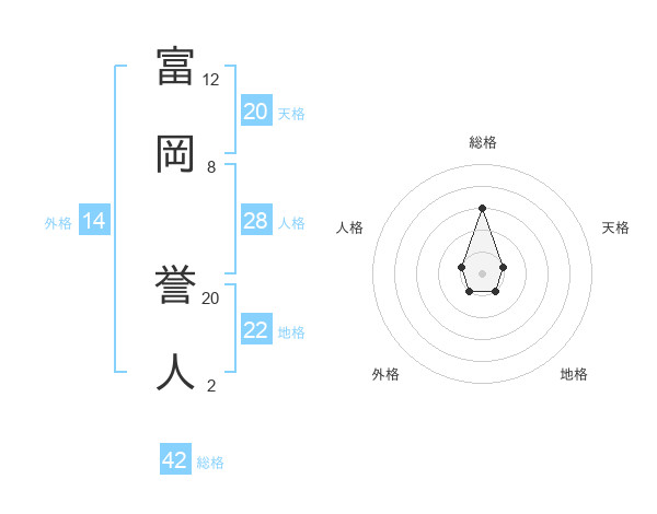 富岡 誉人さんの総格は42画の3点!