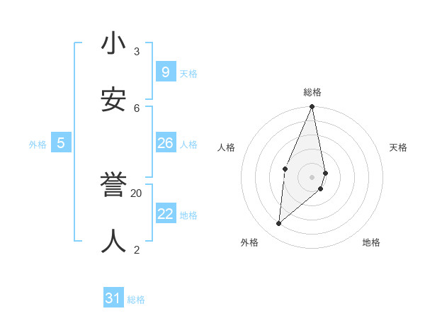 小安 誉人さんの総格は31画の5点!