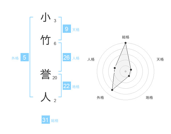 小竹 誉人さんの総格は31画の5点!