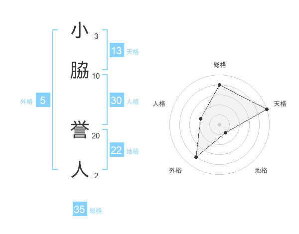 小脇 誉人さんの天格は13画の5点!