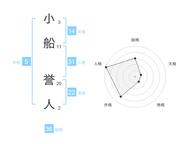 小船 誉人さんの天格は14画の1点!