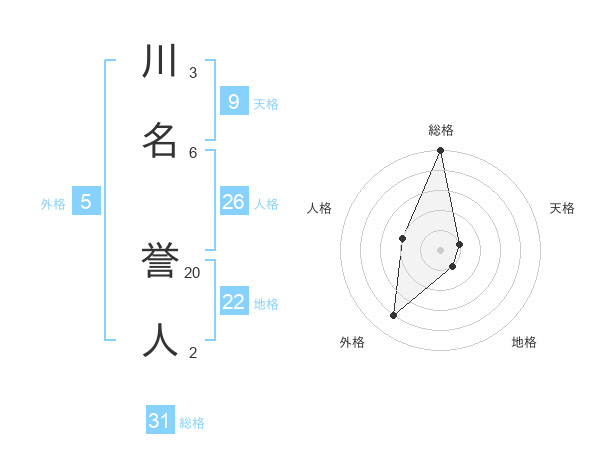 川名 誉人さんの総格は31画の5点!