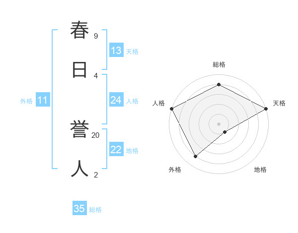春日 誉人さんの総格は35画の4点!
