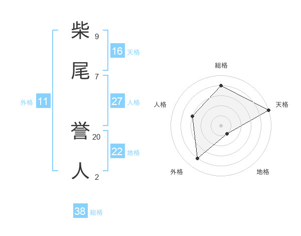 柴尾 誉人さんの総格は38画の4点!