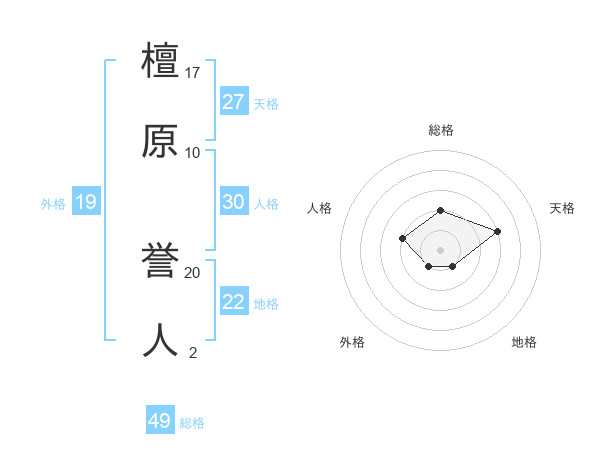 檀原 誉人さんの総格は49画の2点!