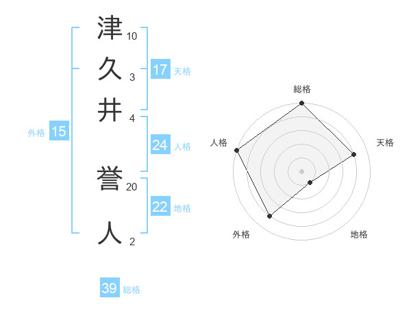 津久井 誉人さんの総格は39画の5点!