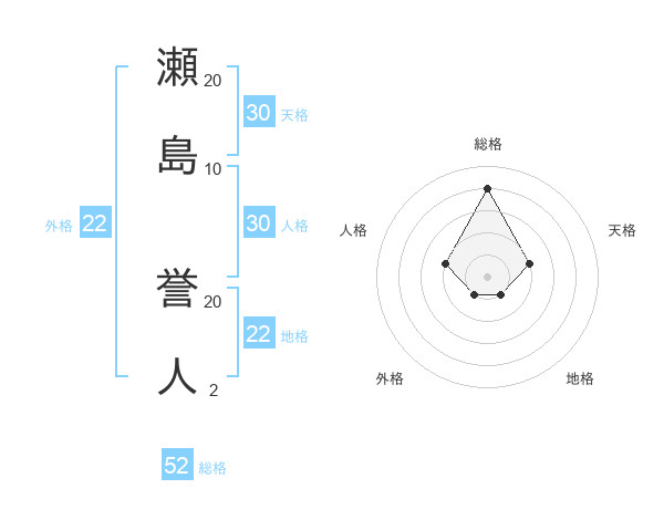 瀬島 誉人さんの地格は22画の1点!