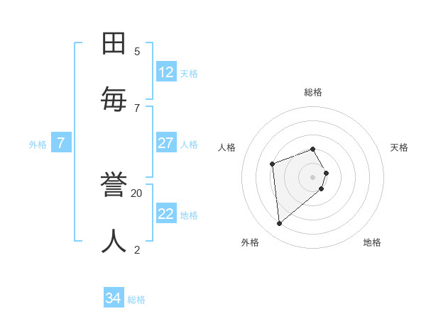 田毎 誉人さんの天格は12画の1点!