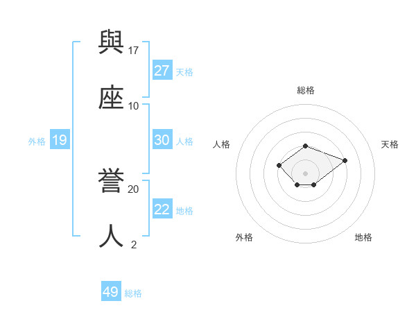 與座 誉人さんの総格は49画の2点!