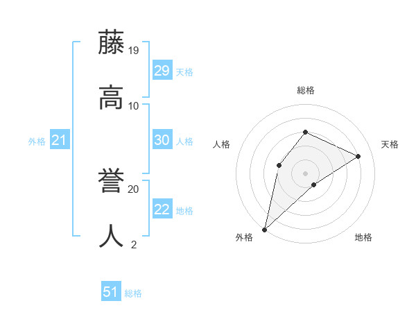 藤高 誉人さんを姓名の画数から五運を鑑定