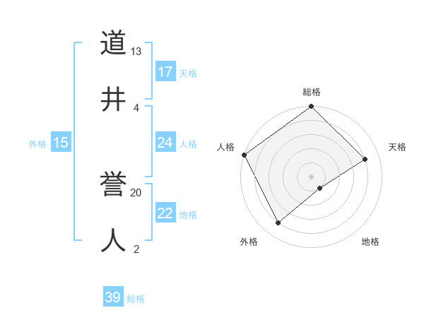 道井 誉人さんの総格は39画の5点!