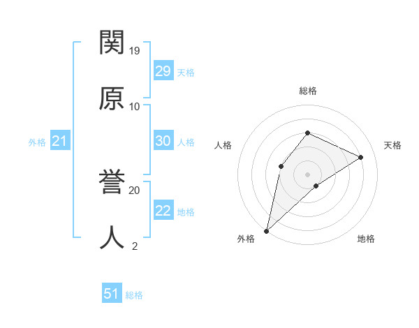 関原 誉人さんの総格は51画の3点!