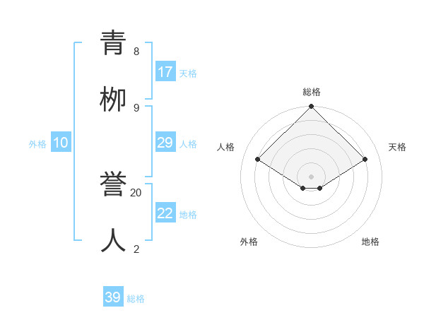 青栁 誉人さんを姓名の画数から五運を鑑定