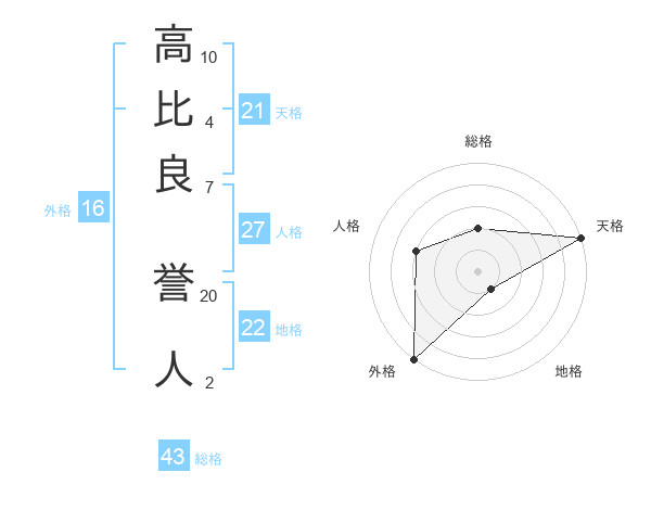 高比良 誉人さんを姓名の画数から五運を鑑定