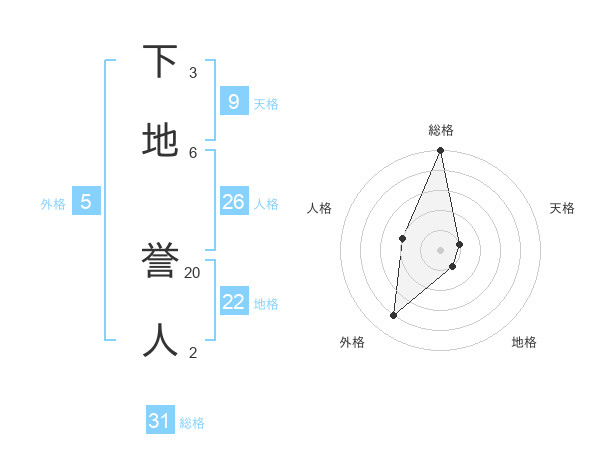 下地 誉人さんの総格は31画の5点!