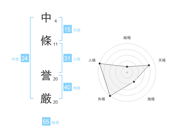 中條 誉厳さんの総格は55画の1点!