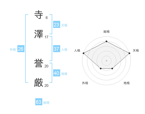 寺澤 誉厳さんを姓名の画数から五運を鑑定