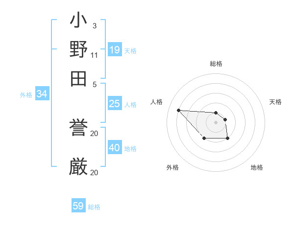 小野田 誉厳さんを姓名の画数から五運を鑑定