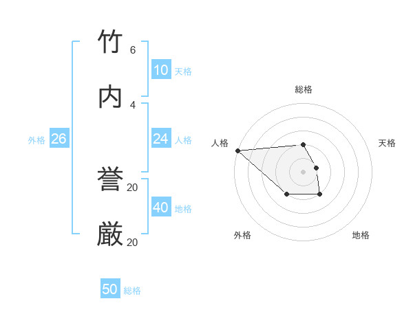 竹内 誉厳さんの総格は50画の2点!