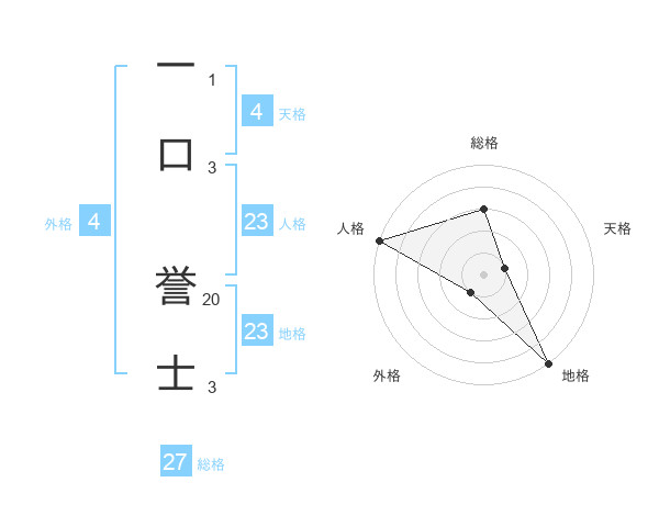 一口 誉士さんの総格は27画の3点!