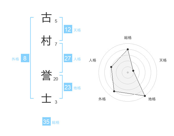 古村 誉士さんの総格は35画の4点!