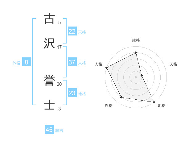 古沢 誉士さんの総格は45画の4点!