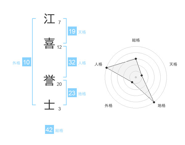 江喜 誉士さんを姓名の画数から五運を鑑定
