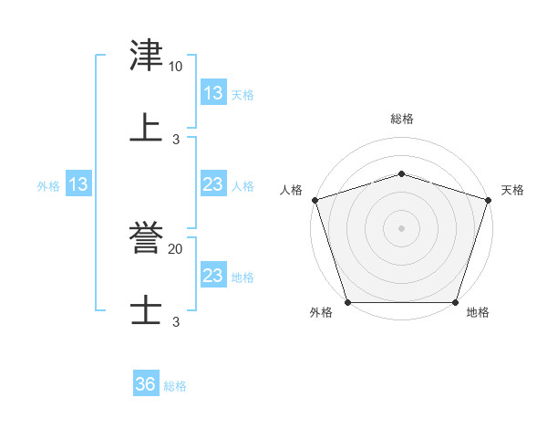 津上 誉士さんの外格は13画の5点!