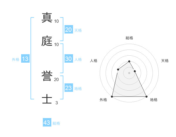 真庭 誉士さんの天格は20画の1点!