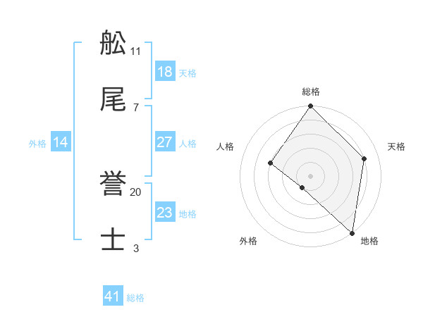 舩尾 誉士さんの総格は41画の5点!
