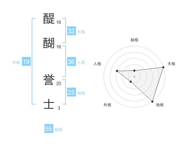 醍醐 誉士さんの総格は55画の1点!
