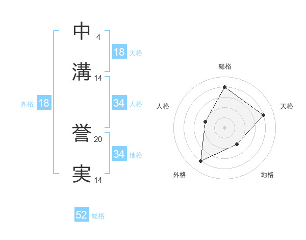 中溝 誉実さんの総格は52画の4点!