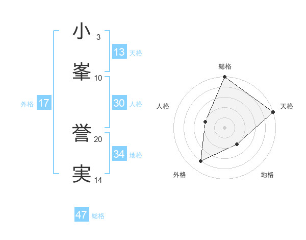 小峯 誉実さんの総格は47画の5点!