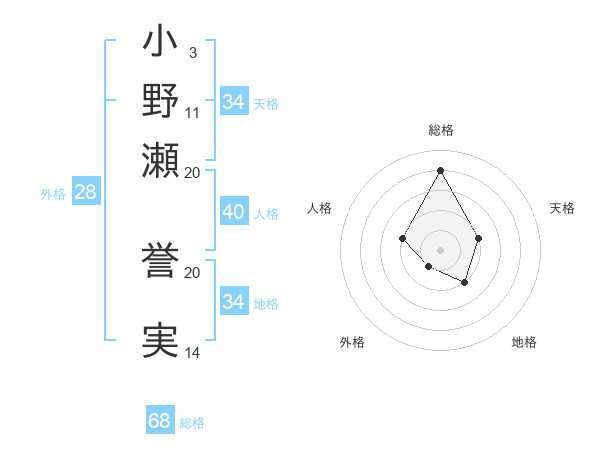 小野瀬 誉実さんを姓名の画数から五運を鑑定