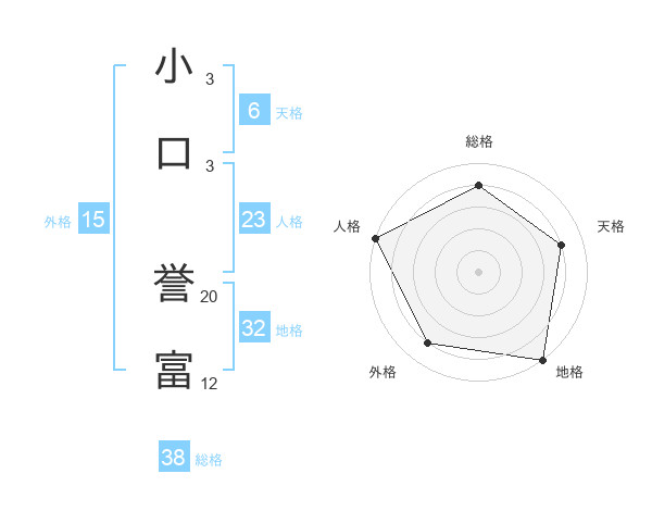 小口 誉富さんの総格は38画の4点!
