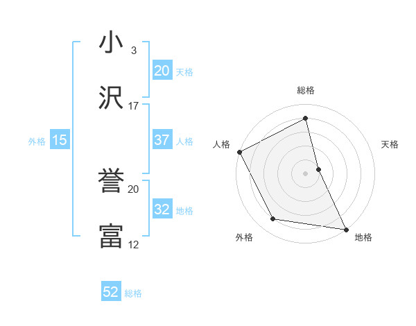 小沢 誉富さんを姓名の画数から五運を鑑定