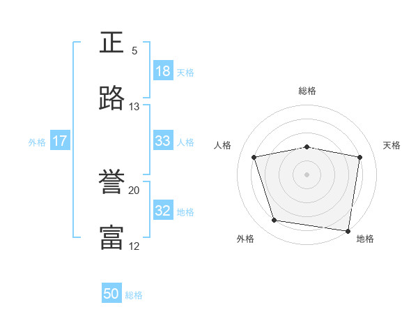 正路 誉富さんの総格は50画の2点!