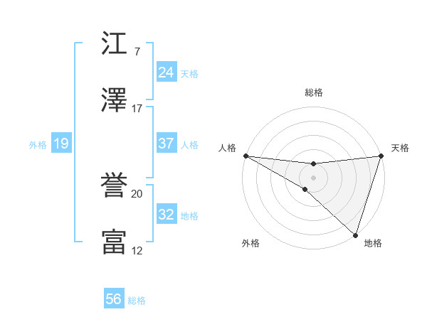 江澤 誉富さんを姓名の画数から五運を鑑定