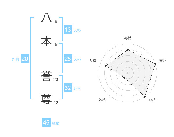 八本 誉尊さんを姓名の画数から五運を鑑定