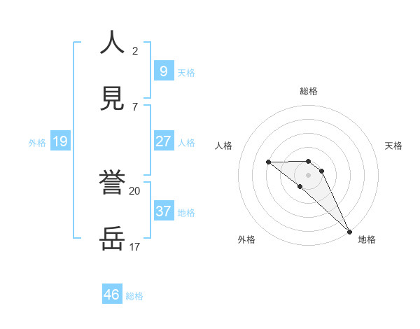 人見 誉岳さんを姓名の画数から五運を鑑定