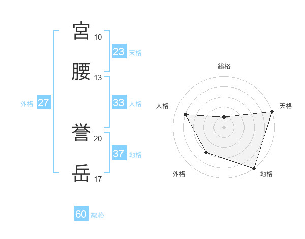 宮腰 誉岳さんを姓名の画数から五運を鑑定