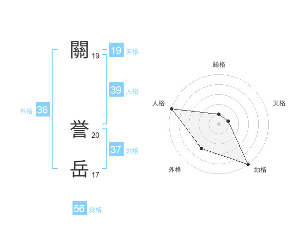 關 誉岳さんの総格は56画の1点!