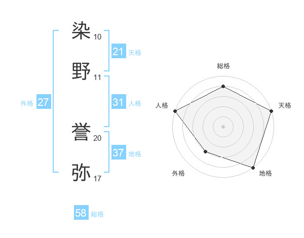 染野 誉弥さんの総格は58画の4点!