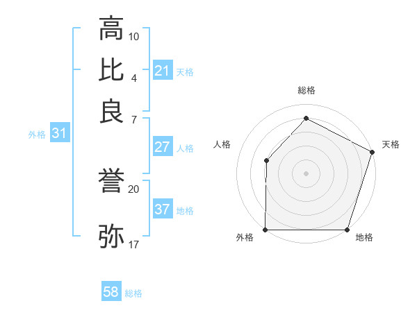 高比良 誉弥さんを姓名の画数から五運を鑑定