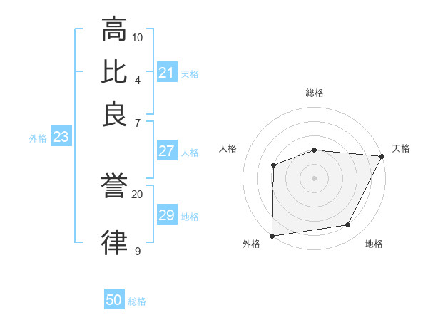 高比良 誉律さんを姓名の画数から五運を鑑定